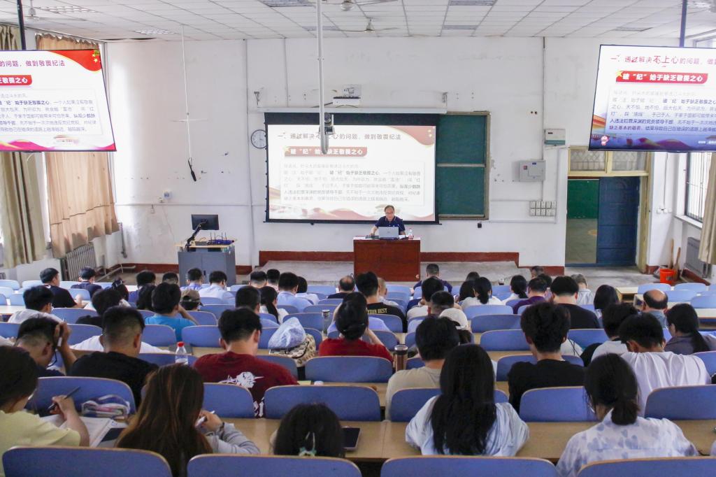 5月21日,sunbet申搏官方网站党委书记高尚宇在学院全体党员大会上,以“准确掌握《中国共产党纪律处分条例》的要求和蕴含原理”为题,讲授了党纪学习教育专题党课。