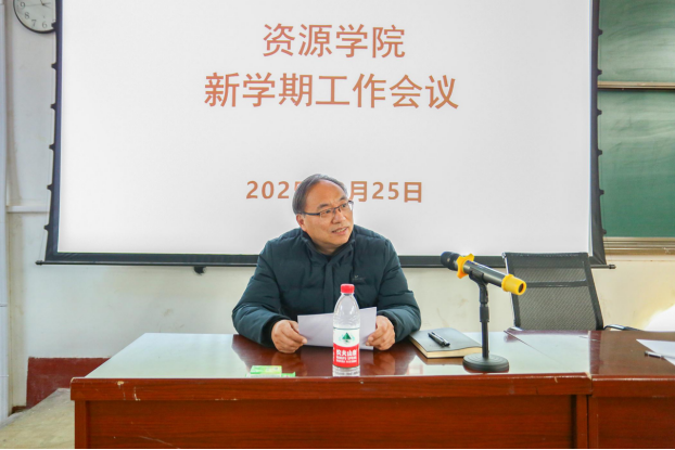 会上,高尚宇向全体教职工传达了学校一流学科建设推进会及学校工作会议精神。他围绕如何深刻领会并全面落实学校一流学科建设推进会的重要精神展开深入阐述,强调要秉持守正创新工作理念,聚焦核心专业发展,全力打造学科优势,做好结合文章、转化文章和服务文章,为学校一流学科建设贡献“资源”力量。高尚宇指出,2025年是实现学校“三步走”战略第二步目标和实施学校“十四五”规划的收官之年,将要召开学校第四次党代会。新年伊始,学校召开一流学科建设推进会意义深远,责任艰巨,使命光荣。在这一关键时期,高尚宇向全体职教工提出三点要求:一是要将思想和行动统一到学校的决策部署上来,切实增强投身学校发展的责任感和使命感,强化执行力度。二是要主动提高政治站位,自觉将个人发展与学校整体发展紧密结合起来,勇于担当,积极作为,紧密围绕学校一流学科建设,扎实做好各项工作。三是要筑牢安全底线,全方位多举措保障学院安全稳定,为学校第四次党代会的顺利召开,营造和谐稳定的良好环境,为学校高质量发展提供有力的安全保障。