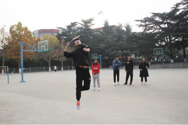 赛前,工作人员细心地为同学们讲解比赛规则,分配场地,准备工作井然有序。比赛拉开帷幕,各位选手严阵以待,迅速进入状态。其中,男生组方威表现出色,扣球精准、反应迅速、出手果敢决断,面对各种难度球,他调整步伐与站位,强有力的挥拍、高技巧的搏杀,使羽毛球运动的魅力感染全场;女生组张明琪吊球技术娴熟,接球稳准,虽打法柔和,但暗藏玄机,将羽毛球的技巧展现得淋漓尽致。赛场上选手们激情四射,大展身手,扣杀、劈杀、吊球......各路球技令观众目不暇接,一次次精彩的扣球,一次次灵活的转身,引得场下同学们热情喝彩!