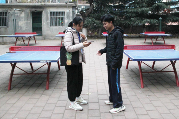 本次乒乓球个人赛决赛采用五局三胜制,以抽签的形式决定对手。赛前,学院选手王孜懿、刘明启提前到达比赛场地,进行热身活动。