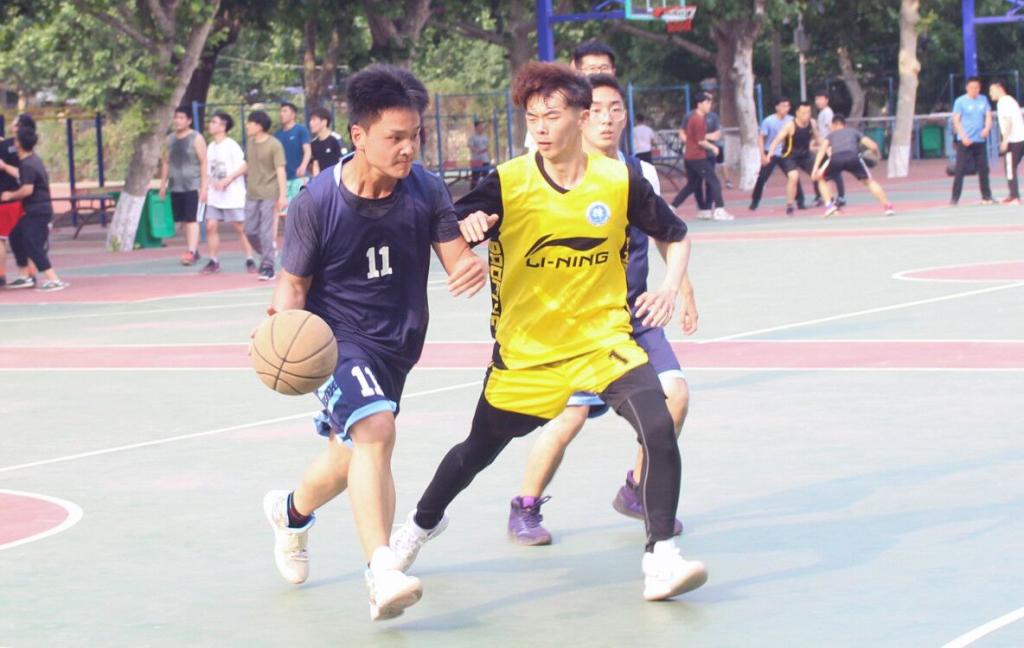 中圈跳球,两队争锋。部门篮球赛两队开局争先,激发球场热血。