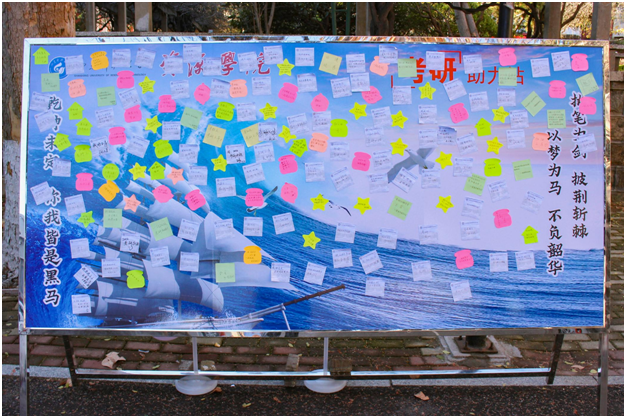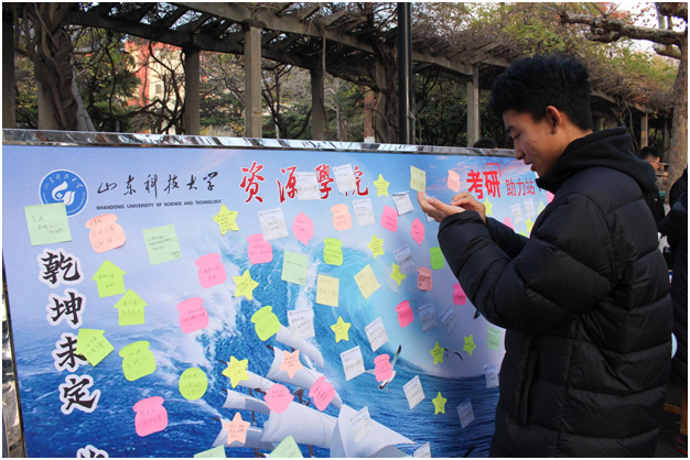 “学长学姐你最棒!考研必胜!”“愿你研途熠熠生辉!”……同学们纷纷驻足,为考研学子留下暖心祝福。