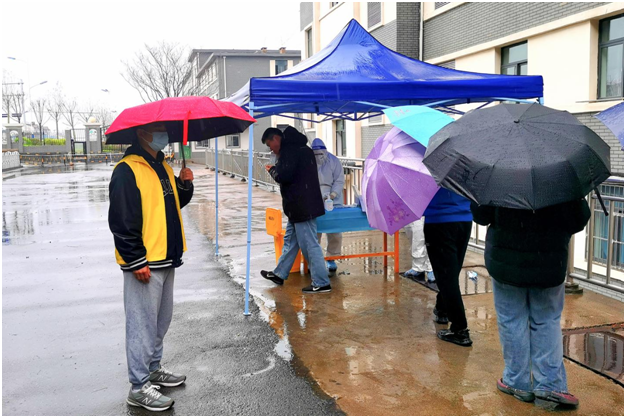 3月25日,全员核酸检测紧张有序进行,阴雨天气中,sunbet申搏官方网站的学生党员和志愿者们热情高涨,全身心投入到服务工作中。