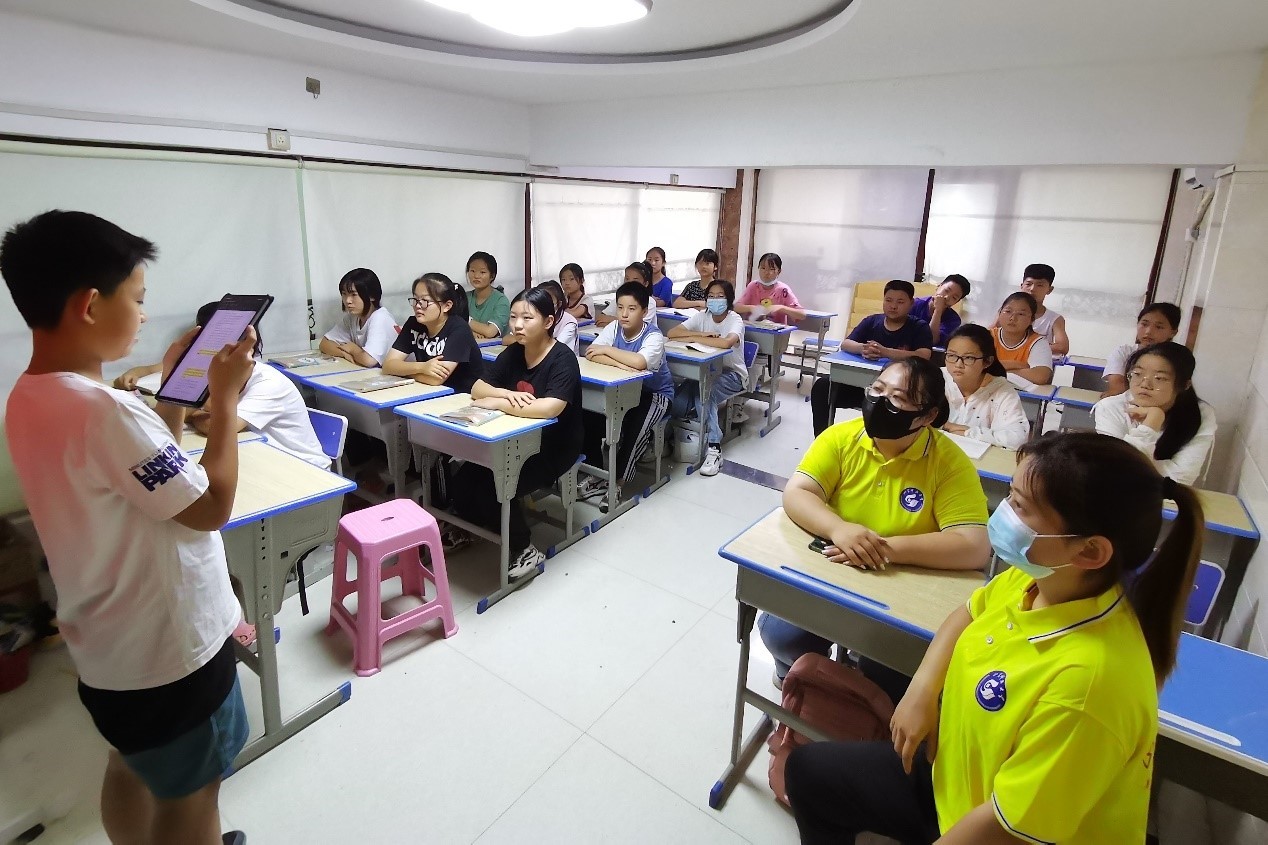 宣讲过程中,团队成员以“心中有信仰,脚下有力量”为主题,结合山东渤海军区教导旅解放全中国、保卫边疆的故事,为孩子们生动讲述了革命先烈为人民鞠躬尽瘁、死而后已的伟大精神,用通俗易懂的语言给孩子们上了一堂深刻生动的红色主题教育课。随后,团队成员带领孩子们共同观看了“初心讲堂之渤海军区教导旅”的视频,通过交流互动学习党史知识、坚定理想信念,号召广大青少年继承革命先辈们的革命精神和优良传统,珍惜来之不易的幸福生活,努力成为可堪大用能担重任的栋梁之材。