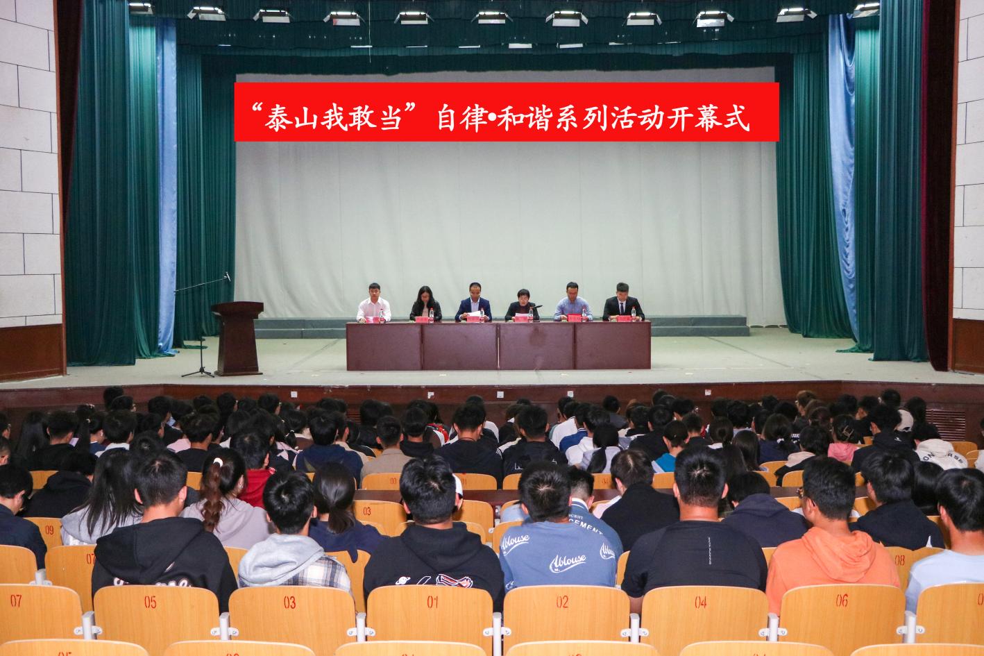 10月25日,sunbet申搏官方网站第八届“泰山我敢当”大学生自律•和谐系列活动开幕式在西校园礼堂举行。sunbet申搏官方网站党委副书记、副院长程家国,团委辅导员老师及2023级全体学生参加开幕式。