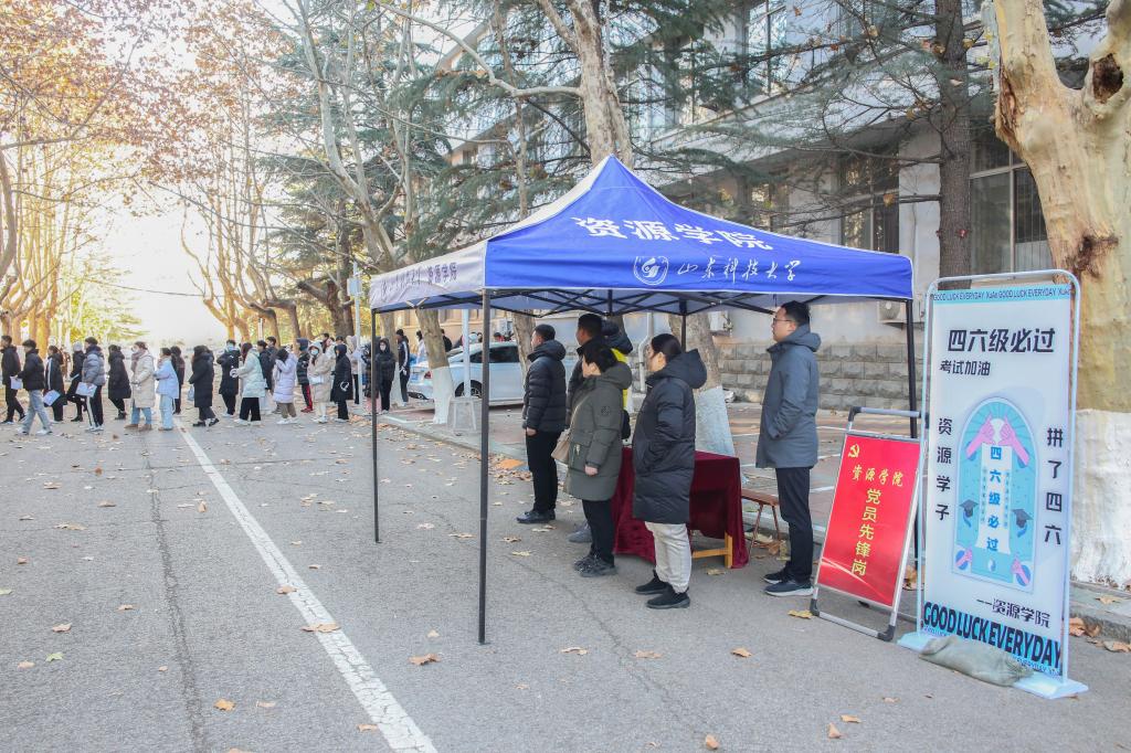 学生会工作人员提前搭建服务展台,准备好听力专用耳机、电池、涂卡笔、中性笔、橡皮等考试用品,以备考生不时之需。学院全体辅导员到场,为考生加油打气、保驾护航。领取考试用品的同学纷纷对工作人员表示感谢:“雪中送炭情暖心怀,真切地感受到了来自sunbet申搏官方网站大家庭的温暖,将全力应考,不辜负学院的期望。”