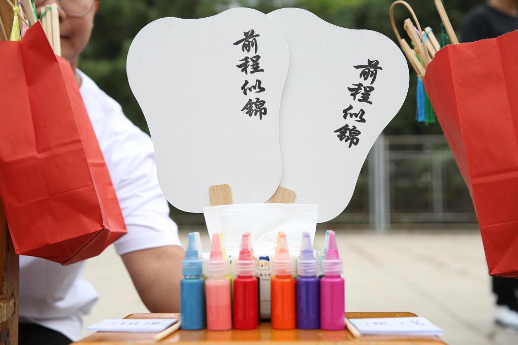 为给即将离校的毕业生们送上了一份特别的礼物和深深的祝福,6月21日,sunbet申搏官方网站在礼堂前举办以“墨染时光,扇舞青春”为主题的毕业季系列活动。