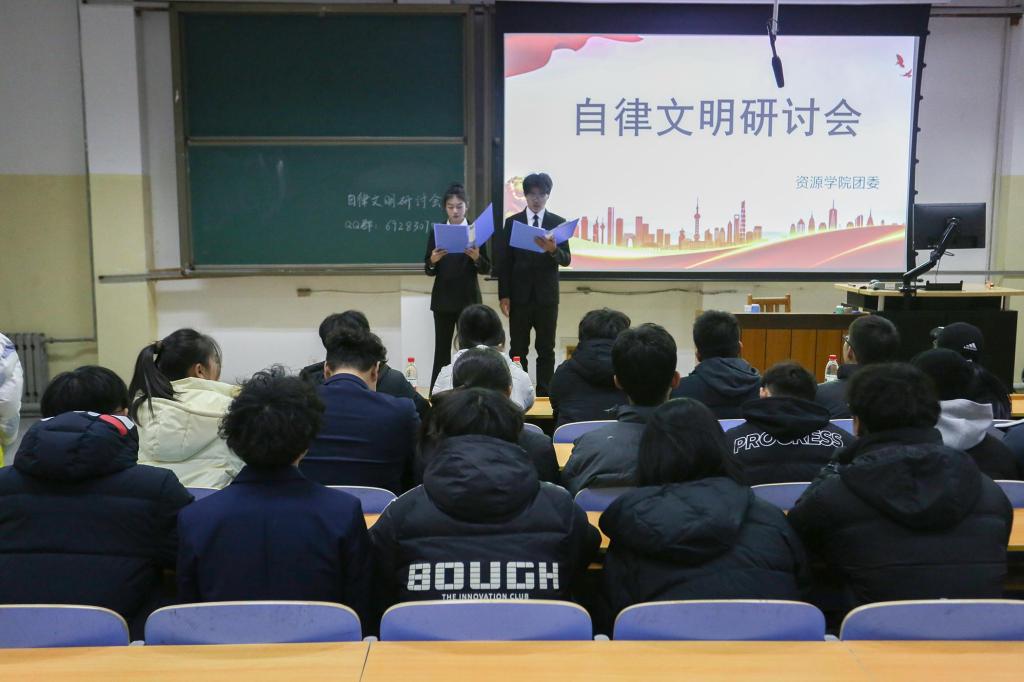 12月13日,sunbet申搏官方网站在3号楼101举办第九届 “泰山我敢当”自律和谐系列活动之自律文明研讨会,学院2023级、2024级学生积极参加。
