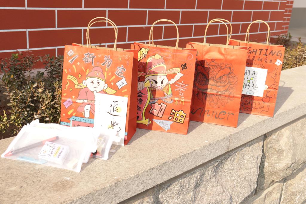 福袋设计活动让考研学子们深刻体会到了学院的支持与温暖,极大地提振了他们的应考信心。愿每一位考研学子鱼跃龙门,独占鳌头,在考研的漫漫征途中披荆斩棘,让梦想之花绚烂绽放。(文:戴晨晨   图:李已夏