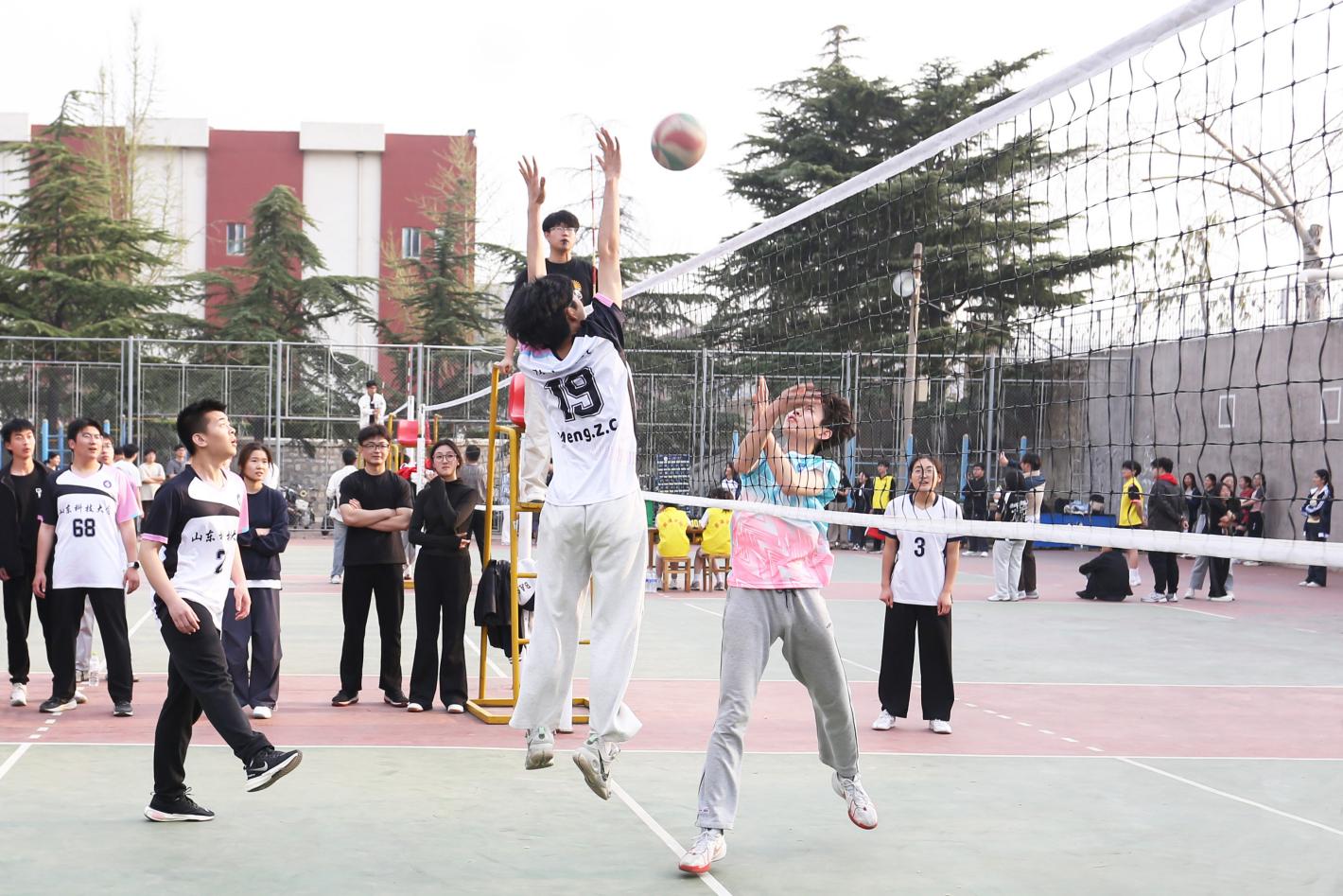 比赛开始后,各队伍迅速进入状态,其中,防灾减灾2024-1队与工程管理2024-3队的比赛最为激烈。赛场上,防灾减灾2024-1队精神抖擞,发球、接球、传球、跑动、扣杀、拦网……每一个细节都展示出队员们的默契配合。双方队员奋力拼搏、对抗激烈,场下观众的欢呼声与加油声交织沸腾,将现场气氛推向高潮。最终,防灾减灾2024-1队以2:1比分赢得了比赛。