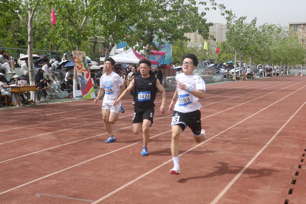 在4*400米接力赛中,选手们风驰电掣,默契配合,精准完成交接,凭借出色过弯技术和强大耐力,奋力保持领先优势。观众们的欢呼声、加油声此起彼伏,最终,学院选手不负众望,工程管理2023级2班夺得乙组男子第一名。