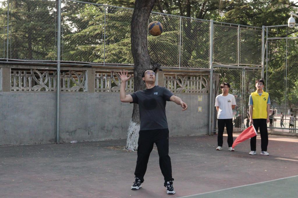 在首日比赛中,2021级队与2022级队的对决尤为激烈。比赛开始后,2021级队展现“老将”风范,势如破竹,抢占优势,发球、接球、传球、跑动、扣杀、拦网……每一个细节都展示出队员们的默契配合;2022级队师生组成黄金搭档,攻守有序,凭借精彩的传球、轻吊、扑救死守比分,引得观众阵阵喝彩。最终,2021级队越战越勇,凭借队友间默契的配合和灵活的战术,赢得了比赛的胜利。其他场地上,参赛师生密切配合,你追我赶,精彩场面频频展现,呐喊声、欢呼声此起彼伏,各年级队伍赛出风采、赛出团结。最终,经过激烈的角逐,2021级队和2022级队取得了首日比赛的胜利。