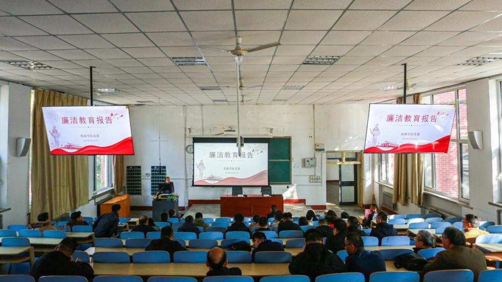 10月21日,sunbet申搏官方网站在1A107教室开展全体教职工廉洁教育。学院党委书记高尚宇主持会议,副院长李楠作专题报告,全体教职工参加。