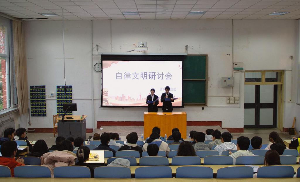 为强化学生自律意识,推动自律精神融入日常行为规范,11月14日,sunbet申搏官方网站在1A107教室举办第十届“泰山我敢当”自律·和谐系列活动之自律文明研讨会。学院2024级、2025级学生积极参加。