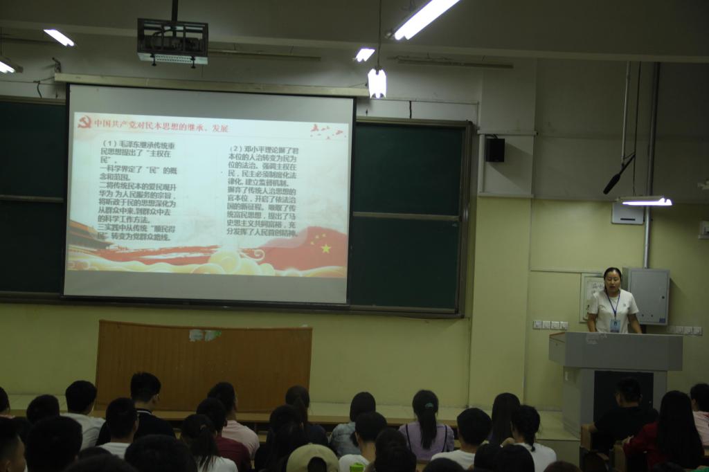 党课围绕“习近平总书记以人民为中心的发展思想”这一主题展开论述。会上,卢业美引经据典,向同学们简要介绍了中国传统民本思想的发展与演变,充分肯定了其存在的积极影响。随后,她结合历代领导人的治国方针,详尽阐述了中国共产党对民本思想的继承与发展,她指出,习近平总书记的民本思想是在继承了中国传统民本思想、吸纳了马克思主义人民思想的基础上的超越与创新,它集中体现为把人民的期待变成我们的行动,把人民的希望变成生活的现实,真正做到亲民、爱民、富民、利民,让人民群众有幸福感、获得感,在以人为本的基础上再进行科学发展。她强调,社会的主要矛盾已经转化为人民日益增长的生活需求和不平衡不充分发展之间的矛盾,共同富裕是社会主义的根本目的,习近平总书记的民本思想是维护党执政地位长治久安与推进社会主义现代化事业的重要保障。最后,她回想抗击疫情中感人事迹,深情地对同学们说:“中国共产党是为民而生,带领中国人民站起来;中国共产党是为民而兴,带领中国人民富起来;中国共产党是与民共盛,带领人民强起来,诸位同学要为自己的党员身份感到自豪,要在今后的人生路上不断提高思想先进性、先觉性、组织性与纪律性,为中国的新时代建设添砖加瓦。”
