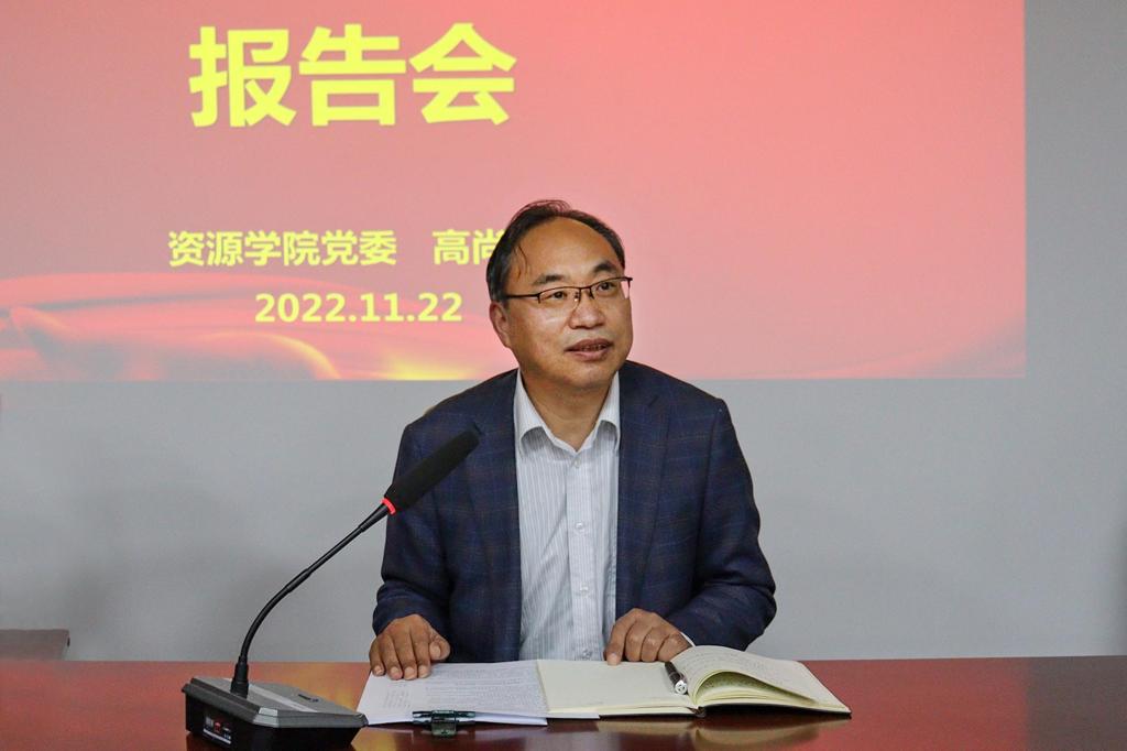 11月22日,sunbet申搏官方网站召开党的二十大精神宣讲报告会,学院党委书记高尚宇为全体教职工作党的二十大精神宣讲报告。