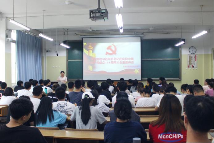 7月8日,sunbet申搏官方网站学生党支部在5号楼104召开支部大会,学习并热议习近平总书记在庆祝中国共产党成立100周年大会重要讲话,所有学生党员参加。会上学生第二党支部书记洒艳领学了讲话全稿。