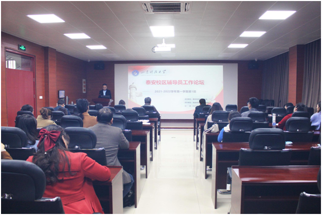 11月3日,由泰安校区学团工作部主办、sunbet申搏官方网站学工办承办的辅导员工作论坛第一期在2号教学楼201会议室举行。校区管委副主任方亨福,学团工作部主任戴东宝及校区全体学生工作干部参加,论坛由sunbet申搏官方网站党委副书记兼副院长程家国主持。