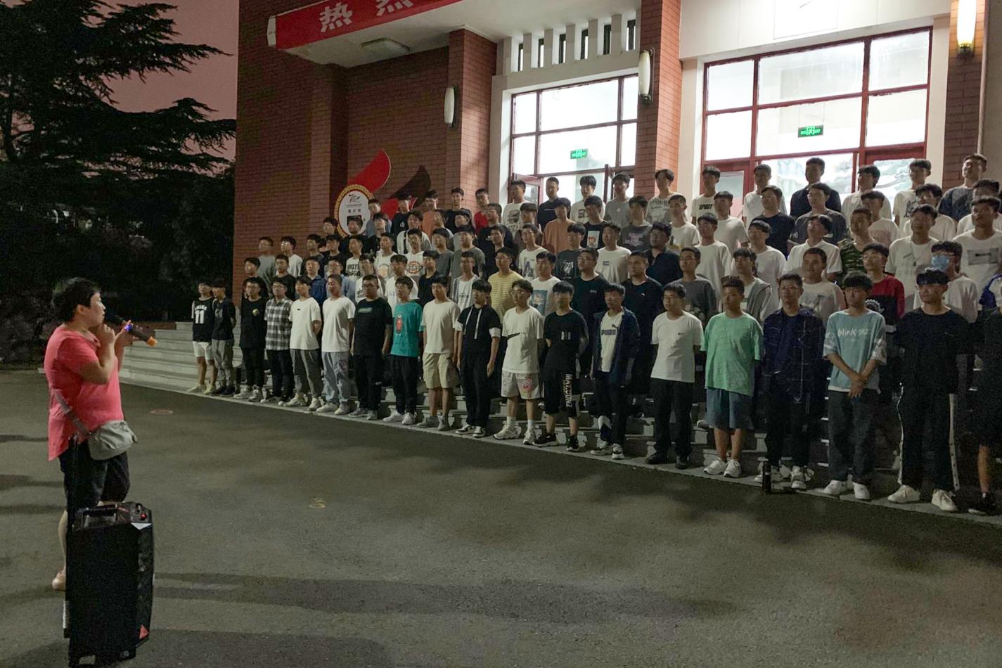 9月14日,sunbet申搏官方网站团委书记洒艳,王淦等辅导员亲临现场,指导新生练习军歌。
