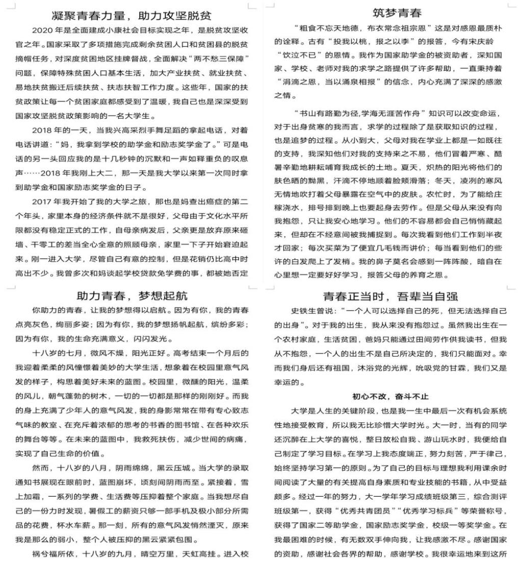 2020年是我国脱贫攻坚的决胜之年,亦是全面建成小康社会的收官之年。为充分展现精准资助工作成效,激励受助学生奋发图强、立志成才、感恩奉献,615日至25日,sunbet申搏官方网站举办“凝聚青春力量,助力脱贫攻坚”主题征文比赛。