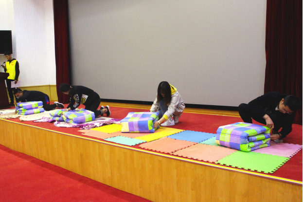 开幕式结束后组织开展了内务整理叠被子比赛。比赛中,同学们争分夺秒,认真细致,动作娴熟。最终,比赛共评选出一等奖一名、二等奖两名、三等奖三名。(文:邱清雅 图:薛鲲鹏)