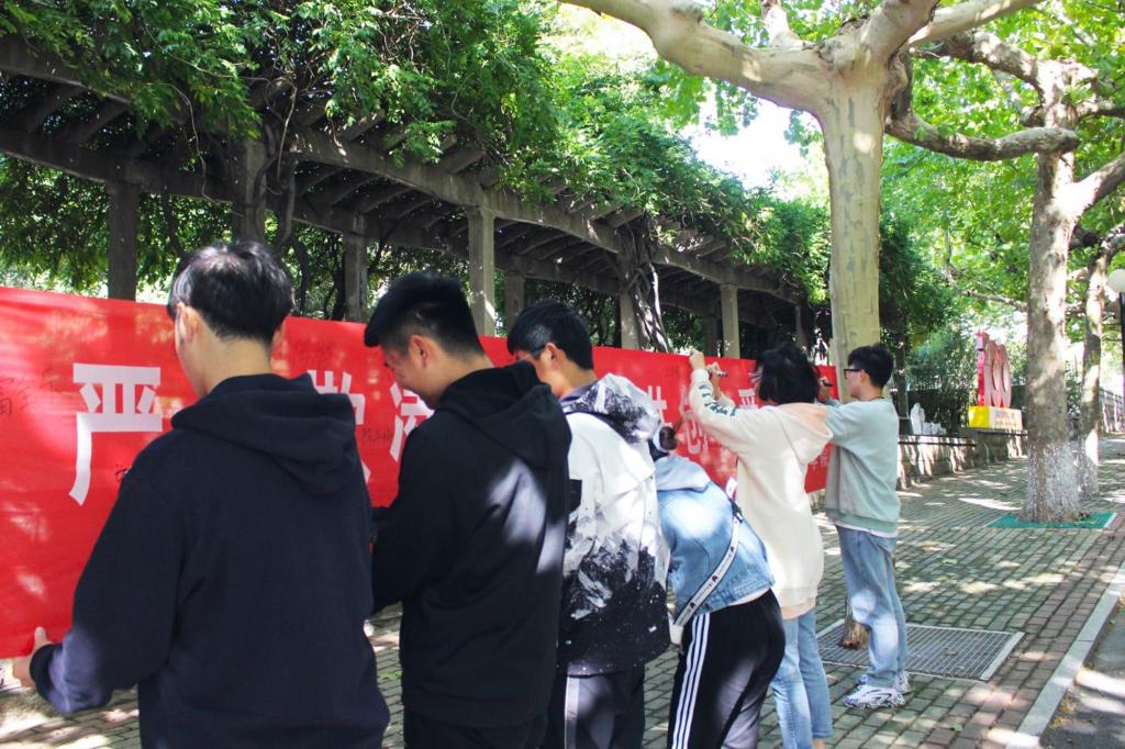 10月10日,sunbet申搏官方网站在林荫道开展防校园欺凌条幅签字活动。