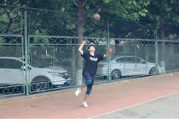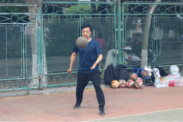 立身定发,稳健对局。团委辅导员尹发利老师稳定发球,带动全场节奏。