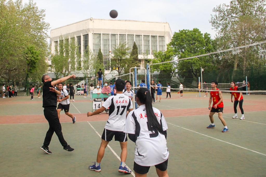 4月11日,sunbet申搏官方网站师生排球友谊赛在东校园排球场拉开帷幕。比赛采用“五局三胜”积分循环赛制,以辅导员为单位,共有七支队伍参赛。