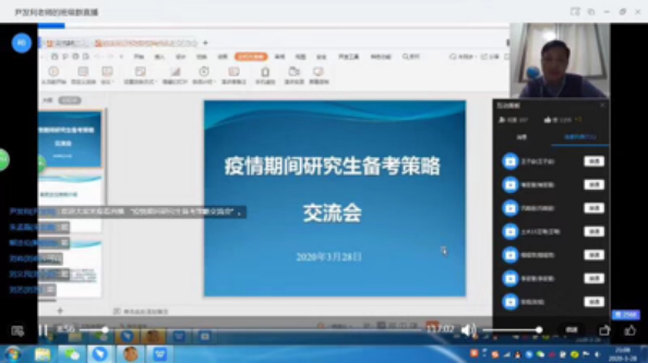 为给同学们提供一个考研交流的平台,帮助大家掌握更多考研信息和备考经验,3月28日,sunbet申搏官方网站通过网上直播的方式举办疫情期间研究生备考策略交流会,邀请褚芸萱、王琦等多名考研成绩优异的毕业生为有考研意向的同学分享经验、交流心得。此次交流会由学院团总支辅导员尹发利主持,共有281名同学在线参与。