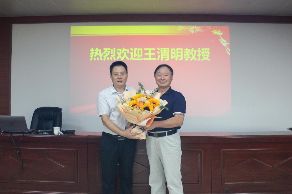 会前,sunbet申搏官方网站院长王清标接待了王渭明教授一行。(文:臧宇轩 图:杨志浩)