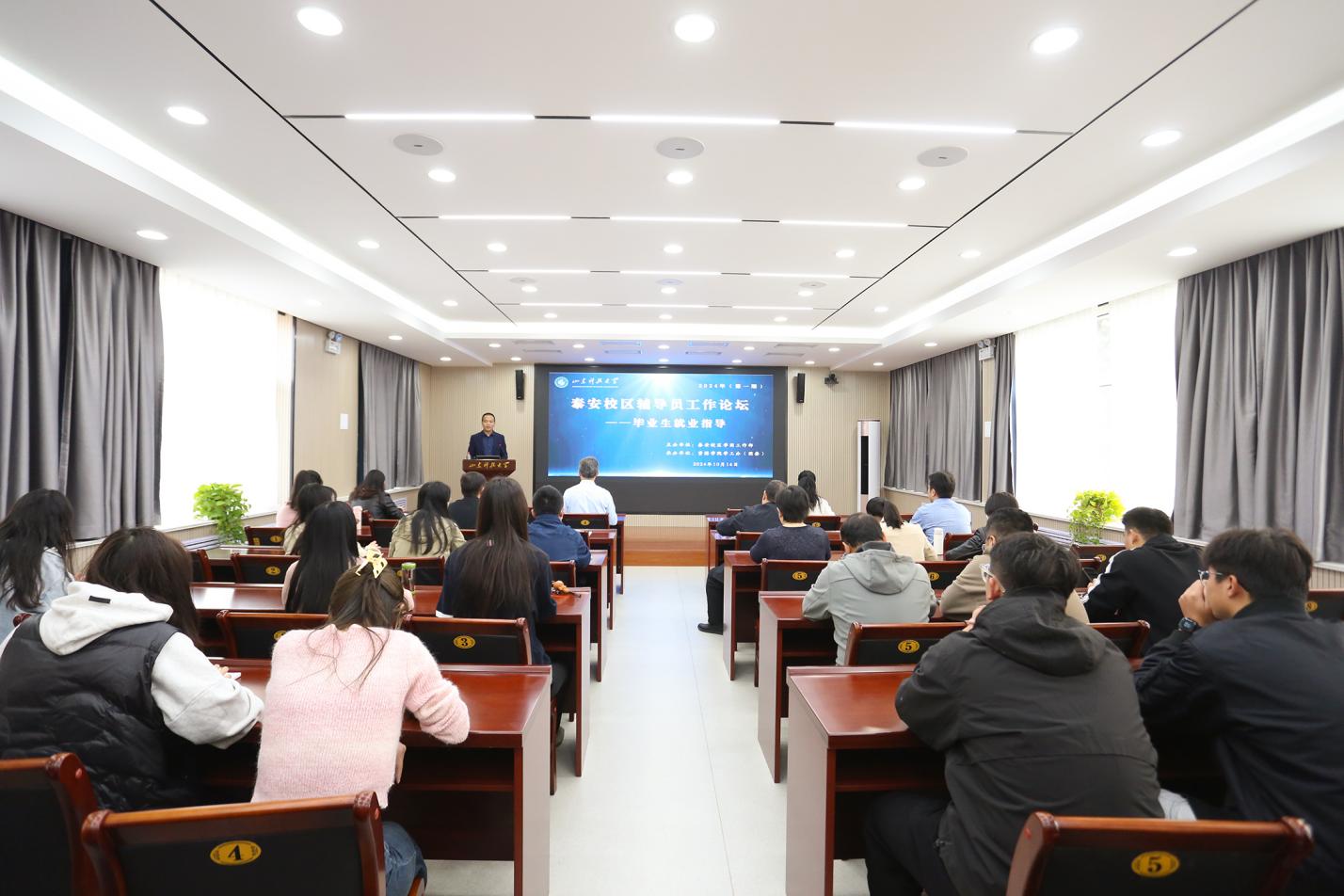 10月16日,由泰安校区学团工作部主办、sunbet申搏官方网站承办的辅导员工作论坛第一期在办公楼301举行,论坛聚焦“毕业生就业指导”这一核心议题,汇集校区学生工作者智慧,共商新时代背景下高校学生就业工作的应对之道。泰安校区管委副主任兼学团工作部主任戴东宝作开幕致辞。sunbet申搏官方网站党委副书记、副院长程家国主持,校区全体学生工作干部参加。