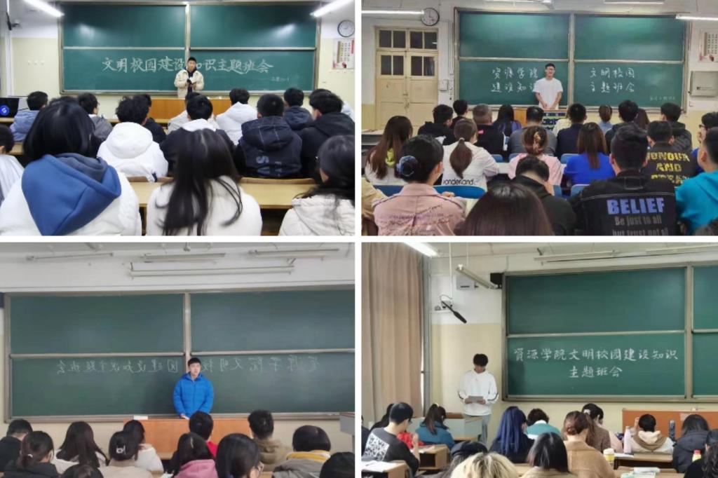 专题学习筑牢理论之魂。火车跑得快,全靠车头带。学院党委将文明校园创建工作列入重要议事工作日程,建立监督机制和目标管理责任制,积极落实党委理论学习中心组学习制度,带头领会罗公利书记在学校文明校园创建迎评动员会上的讲话精神,带头学习领悟学校文明校园创建相关文件要求。创建工作关键在于师生。学院组织召开全体教职工大会,专题学习文明校园创建知识,细化落实个人工作任务,明确新时代教职工在校园文明建设工作中的重要地位;各班级陆续召开主题班会,通过幻灯片演示、视频宣传、主题演讲等形式,普及文明校园建设知识,讲解高校文明校园测评标准,号召广大同学投身创建行列,推动文明校园创建工作走入基层、走入人心。