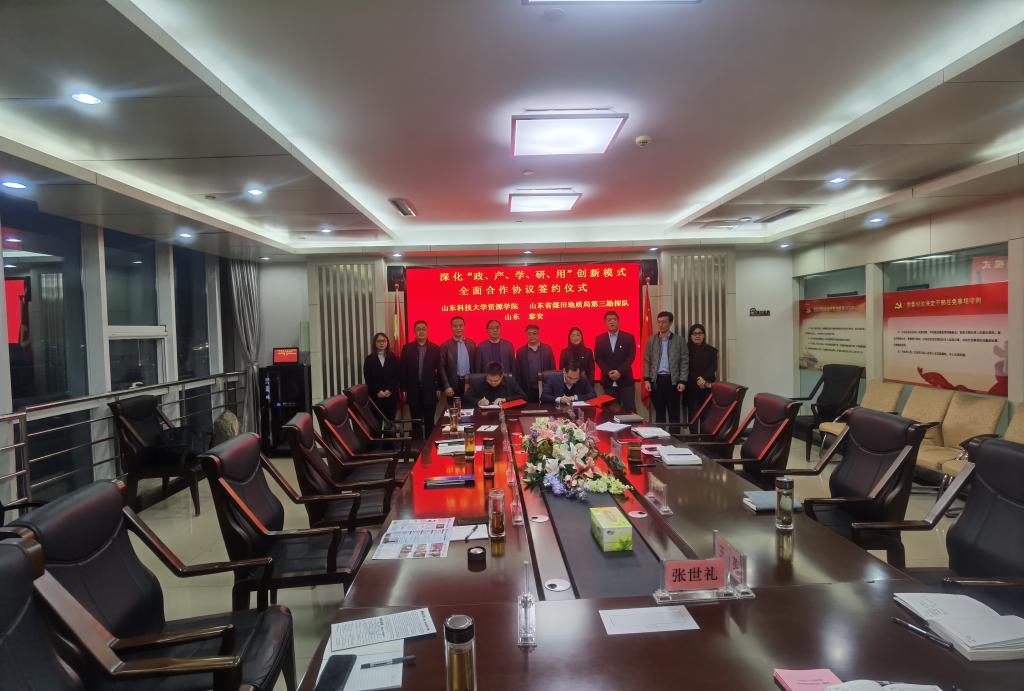 11月11日,sunbet申搏官方网站党委书记高尚宇,院长王清标一行赴山东煤田地质局第三勘探队考察调研,山东煤田地质局第三勘探队党委书记张洪岩,副书记、队长李富强亲切接待。在双方领导的共同见证下,sunbet申搏官方网站与山东煤田地质局第三勘探队正式签订了校企全面合作协议,双方在“政、产、学、研、用”等领域开展全面深度合作。