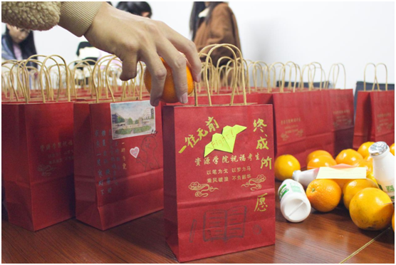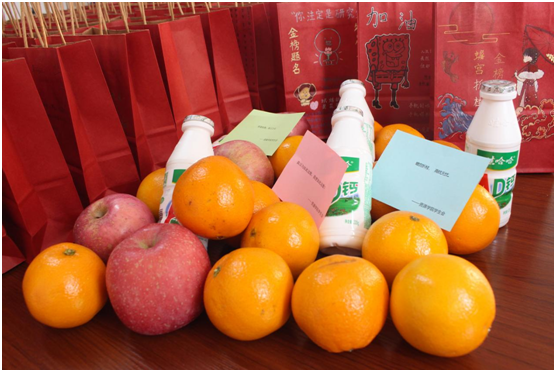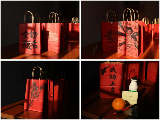 苹果寓意“苹”安上岸,橙子代表心想事“橙”,文具套装助力下笔有神,暖宝宝驱散严寒,祝福卡片承载来自全院师生的殷殷心意,牛奶帮助同学们开启元气满满的每天……从前期礼物设计、挑选,到后期福袋制作、打包,sunbet申搏官方网站师生长情谋划,精心准备,力求将最真挚的祝福送到每一位考研学子的心中。