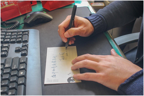 “不服输,熬过黑夜见日出”“奋斗的青春最美丽”“蟾宫折桂此时有,鱼跃龙门在今朝”……一段段饱含深情的文字从笔尖流出,辅导员老师亲手为考研学子写下祝福。