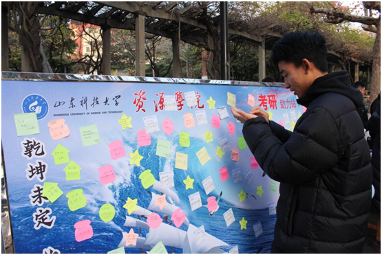 学长学姐你最棒!考研必胜!”“愿你研途熠熠生辉!”……同学们纷纷驻足,为考研学子留下暖心祝福。
