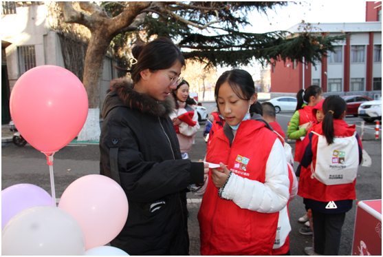 “姐姐,这是我为你画的锦鲤和小花。”来自泰安市小记者团的小朋友们对活动进行了报道,并为考研学子送上了手绘祝福卡。