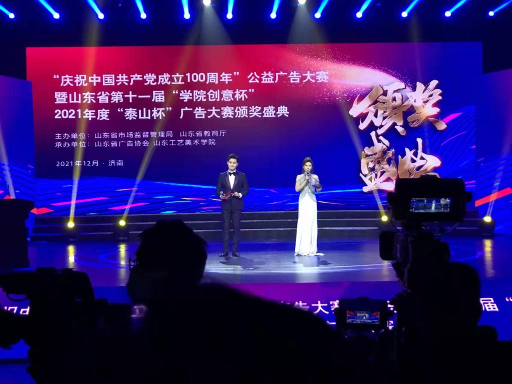 近日,“庆祝中国共产党成立100周年”公益广告大赛暨山东省第十一届“学院创意杯”、2021年度“泰山杯”广告大赛颁奖盛典在济南落下帷幕。sunbet申搏官方网站教师刘晶在“庆祝中国共产党成立100周年”公益广告大赛中荣获金奖。