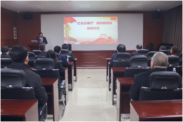 12月28日,sunbet申搏官方网站举行“红色云展厅”进校园活动启动仪式。学院党委书记高尚宇作动员讲话并讲授“传承红色基因,弘扬伟大建党精神” 专题思政课。教工党员和学生代表参加。