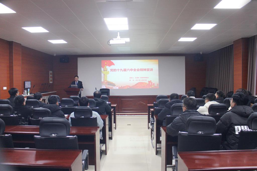 12月28日,sunbet申搏官方网站院长王清标在2号楼201会议室为学院研究生及所联系的本科班级学生代表宣讲党的十九届六中全会精神。