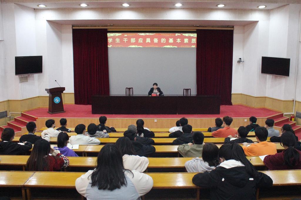 仪式后,洒艳讲授“学生干部应具备的基本素质”专题培训课,详细阐述了学生干部应具有的学习能力、组织能力、决策能力等十大能力,鼓励大家立足本职岗位,转变作风、履职尽责、积极作为。洒艳对与会学生干部提出四点希望:一是要培养良好的思想政治素质。加强政治理论学习,增强自身品德修养,以身作则,率先垂范,充分发挥模范带头作用。二是要加强素质能力建设。勤学善思、勇于实践、善于总结,不断提高组织管理能力、执行能力和工作效能。三是要注重心理素质锻炼。注重自身心理健康,保持理性平和的心态,培养广泛的兴趣爱好,保持良好的人际关系,勇于面对挫折,敢于挑战自我,突破自身潜能。四是要强化集体意识。牢固树立大局意识,提高团结协作能力,正确处理“大我”与“小我”之间的关系,担当作为,无私奉献,推进班级、部门凝聚力建设。