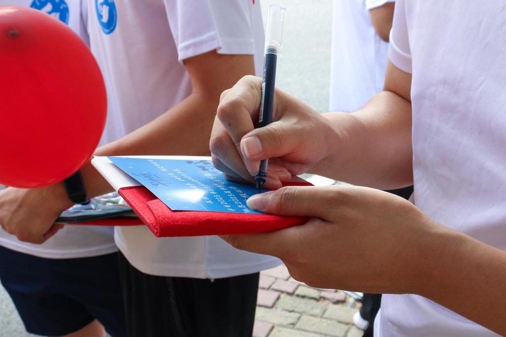 带来幸运,传递温情,sunbet申搏官方网站巧用刮刮乐传递浓浓情意。毕业生从学弟学妹手中接过刮刮乐,俯身轻刮,接续大学四年的幸运:科大定制小熊、水杯、帆布包、签字笔、书签……刮出独属于sunbet申搏官方网站的温情。