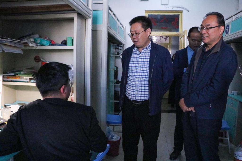 10月24日,sunbet申搏官方网站党委书记高尚宇,院长王清标带队班子成员及全体辅导员深入教室、宿舍,了解学生日常学习、生活情况。