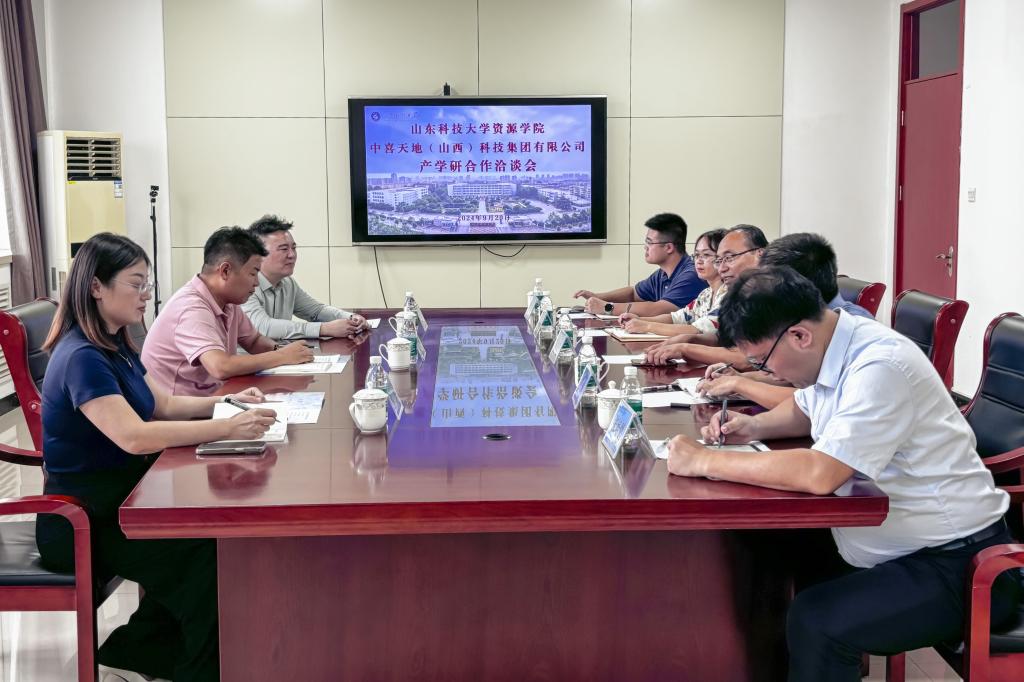 9月20日,中喜天地(山西)科技集团有限公司一行来sunbet申搏官方网站共商产学研深度合作。集团代表济南福深兴安科技有限公司总经理李忠、中喜(山西)信息技术有限公司总经理于恒洋、山东省广新喜齿矿业科技有限公司副总经理张丽与学院开展座谈交流。sunbet申搏官方网站党委书记高尚宇、副院长王辉、副院长于小鸽及部分教师代表在2号楼204会议室会见客人。