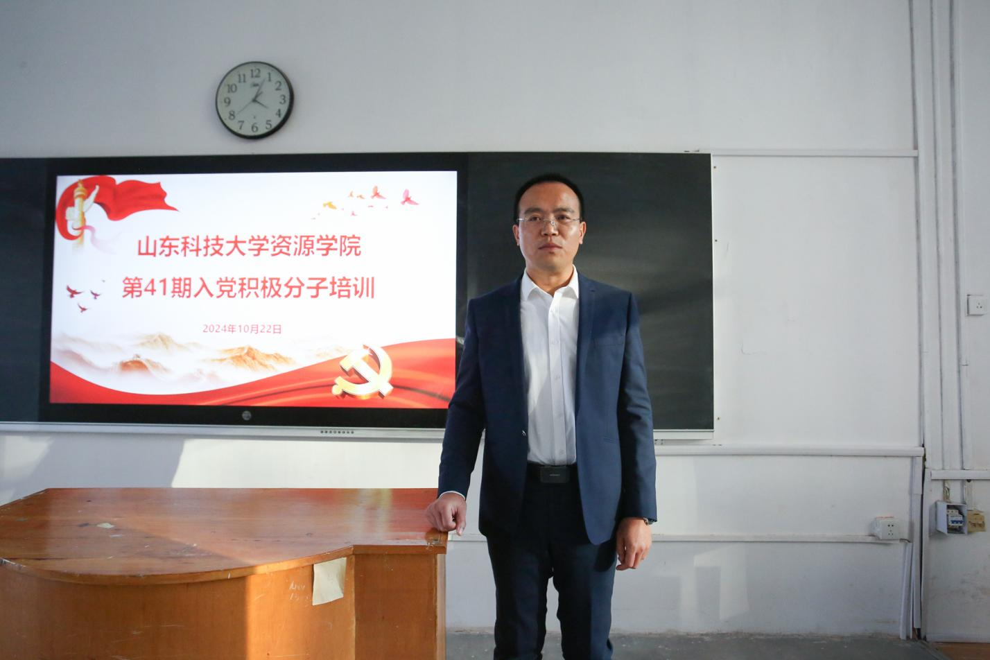 10月22日,sunbet申搏官方网站党委副书记、副院长程家国在1C103为学院第41期入党积极分子讲授“初心如磐,使命在肩—争做优秀入党积极分子”专题党课。
