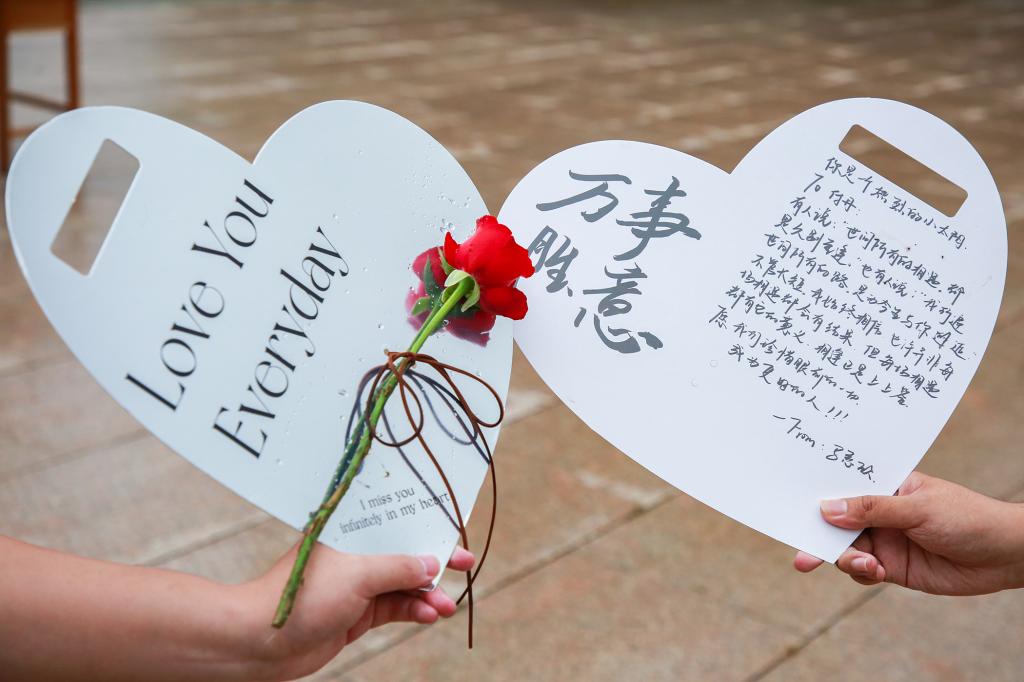 写满期许的KT板和几乎没有留白的条幅格外引人注目,上面写满了同学们的祝福与回忆,拼凑出独属于毕业生们的美好时光。娇艳的玫瑰静静绽放,亲笔写下的笺纸情真意切,寓意学院对毕业生们最美好的祝福,愿毕业生“此去繁华簇拥,归来仍是少年”,带着满满的爱与祝福开启新的人生征程。