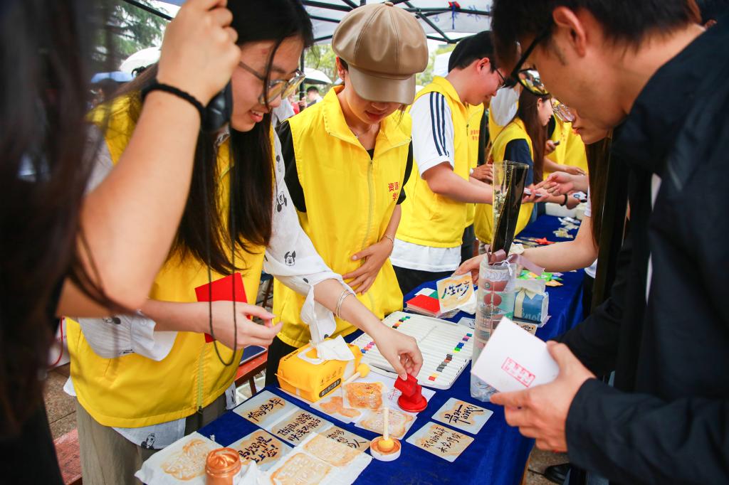一枚枚精致的纪念徽章,一个个充满惊喜的钥匙扣盲袋,还有封藏着干花与校园诗意的DIY书签,一方方拓印,毕业生们亲手印制的趣味文字……都将校园记忆精心打包。这些独一无二的小小信物,如同满载着珍贵回响的时光胶囊,将化作前行的温暖力量,陪伴毕业生启程。愿此去一路繁花相伴,前程似锦,在更广阔的天地里绽放属于他们的璀璨光芒!