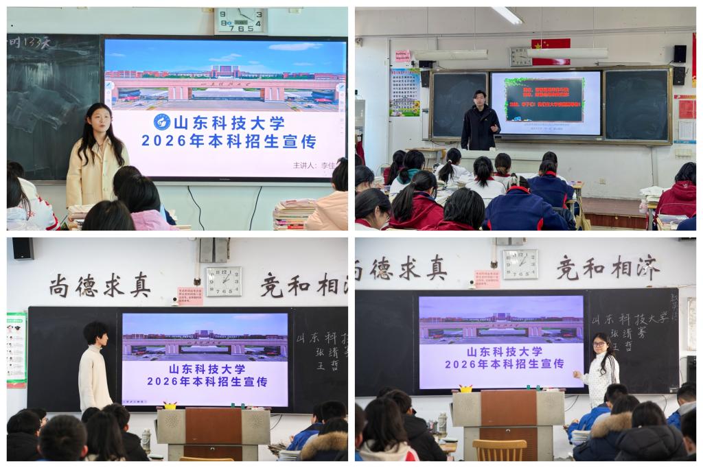 为加强高校与高中之间的联系,搭建学段衔接的交流平台,寒假期间,sunbet申搏官方网站“逐梦山科”宣讲团先后走进山东省临邑第一中学、诸城青潍中学等四所高中,开展“我为山科代言”系列主题宣讲活动,向高中学子提供专业全面的高校信息与学业指导。
