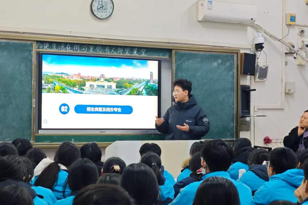 活动中,团队成员以“山科学子代言人”身份,通过校园宣讲、班级分享、一对一咨询等形式,全面介绍学校办学特色、专业优势、招生政策、校园文化及升学就业前景。在校园宣讲环节,团队播放招生宣传片,直观展示学校风貌、学科实力与育人成果;在班级分享中,成员围绕安全工程等特色专业,详细解读课程设置、实践平台及发展方向;在一对一咨询中,耐心解答学生关于报考条件、专业选择、校园生活等方面疑问,帮助其清晰规划升学路径。