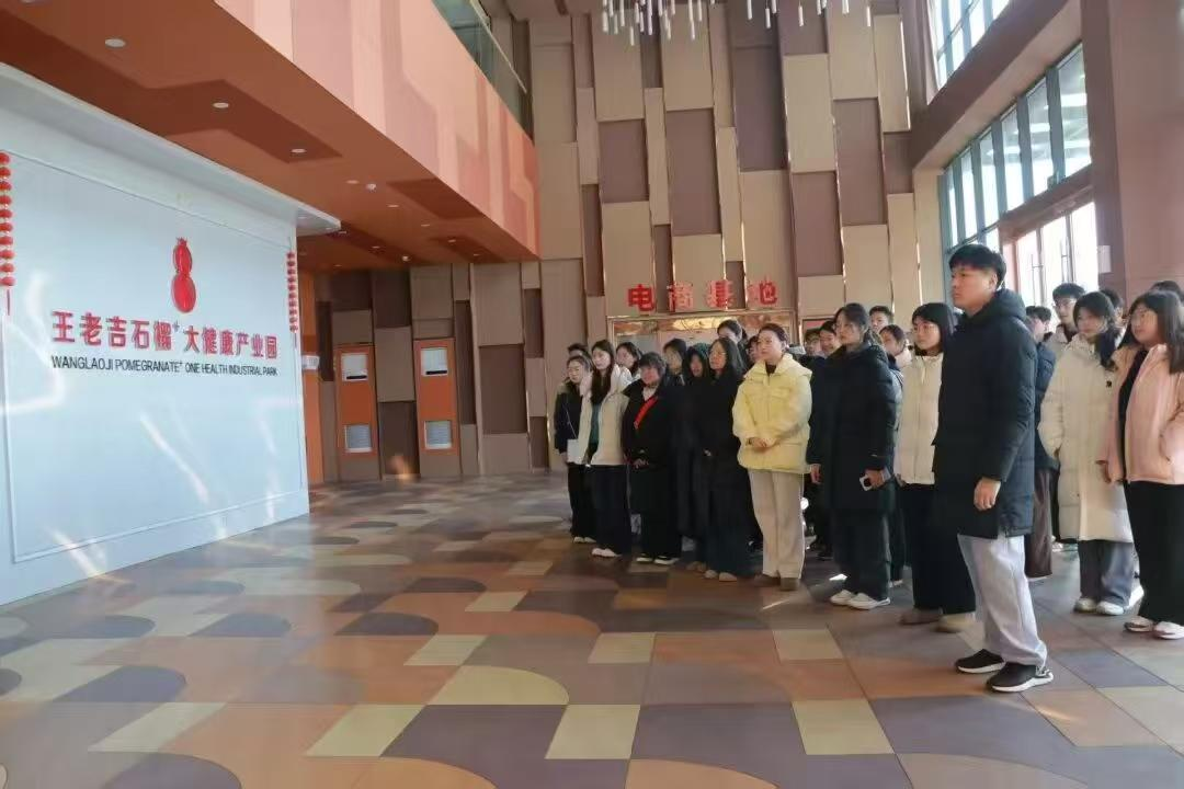 随后,团队走进吉美大健康产业园,参加峄城区团委组织的大学生社会实践暨青年短视频采风活动。在生产一线,队员们亲眼见证了从石榴鲜果到石榴果汁、石榴煎饼等深加工产品的完整转化链条,并通过讲解员细致讲解,全面了解了峄城区石榴深加工产业布局及短视频电商平台等新兴业态的发展模式。